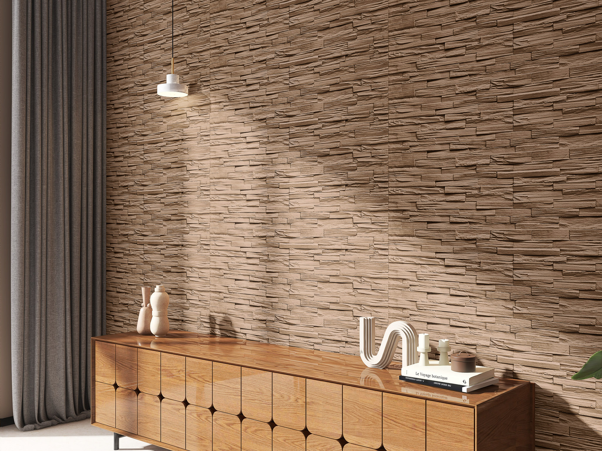 Layer Rock is inspired by naturally stacked stone formations, featuring uneven linear layers that create rich texture and shadow variation. The extended stone profiles and organic surface detailing give walls a grounded, architectural presence that feels bold yet refined.