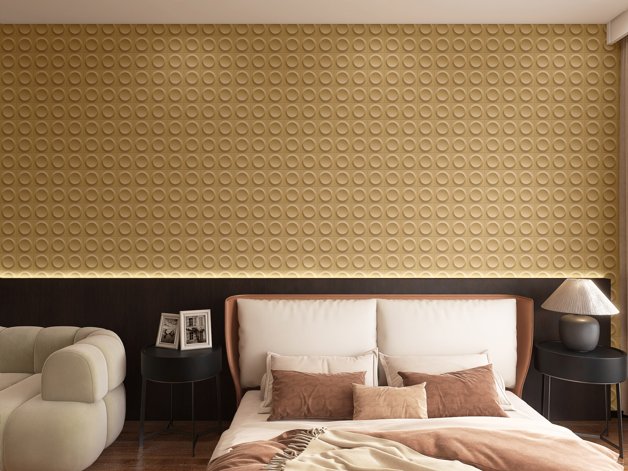 Let's TalkOrbit Ring is defined by evenly aligned circular cavities set within a clean grid, forming a surface that plays with depth through soft shadows and rounded geometry. The recessed form adds visual interest without excess, making the panel ideal for interiors that value order, calm, and contemporary structure.